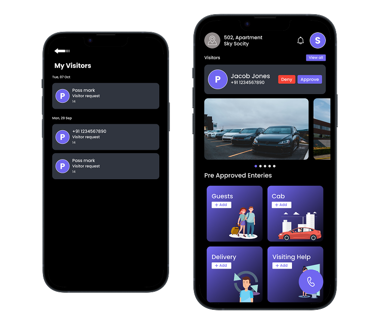 Explore live parking management dashboards, secure gate pass approval screens, digital wallet transactions, and reward point tracking features — all designed to provide a smooth, secure, and user-friendly experience for modern residential societies.